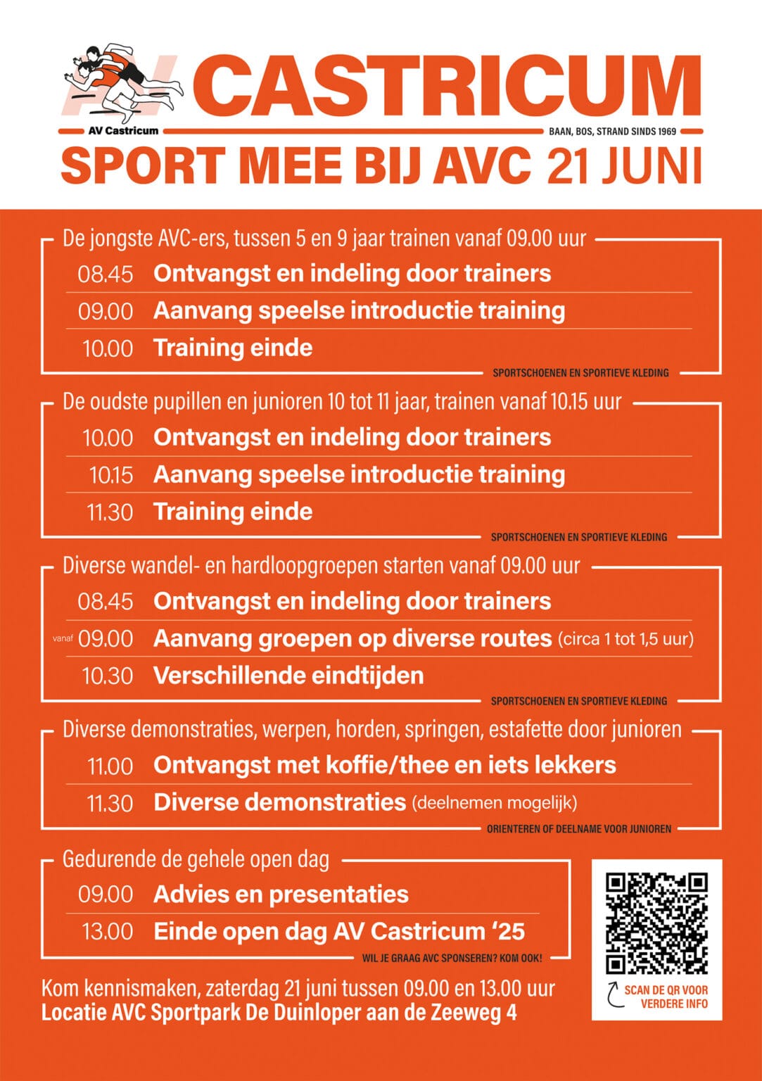 Graag nodigen wij u van harte uit voor de Open Dag van Atletiek Vereniging Castricum!